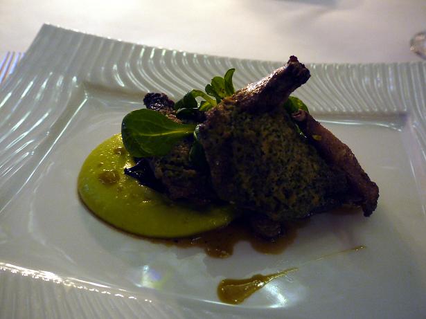 小鳩は丸々一羽。ちょっと硬く歯ごたえがありましたが、旨みは凝縮されていました。なんかの芋のピュレが添えてあります。