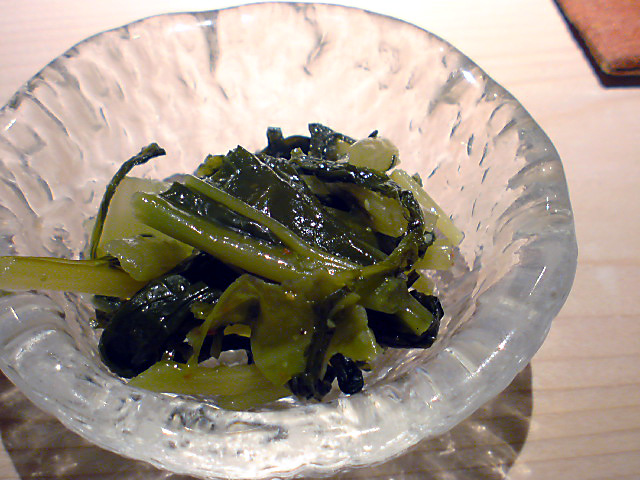 高菜や水菜などで漬け、ちょっとピリ辛胡麻油が利いたお漬物は、箸休めにとってもいいです。おかわりしちゃいました。