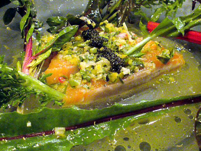 ”鮭児”のマリネと”オシェトラキャビア”オリエンタルハーブの香り
