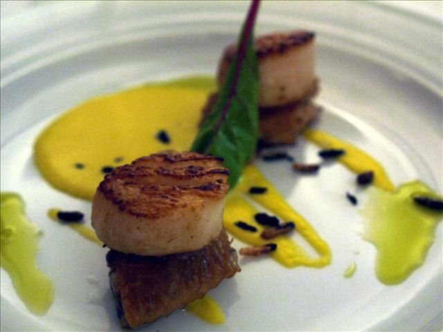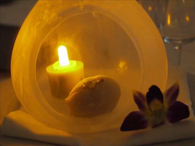 Coconut parfait ,sable,pineapple gelee,lime and coconut sorbet