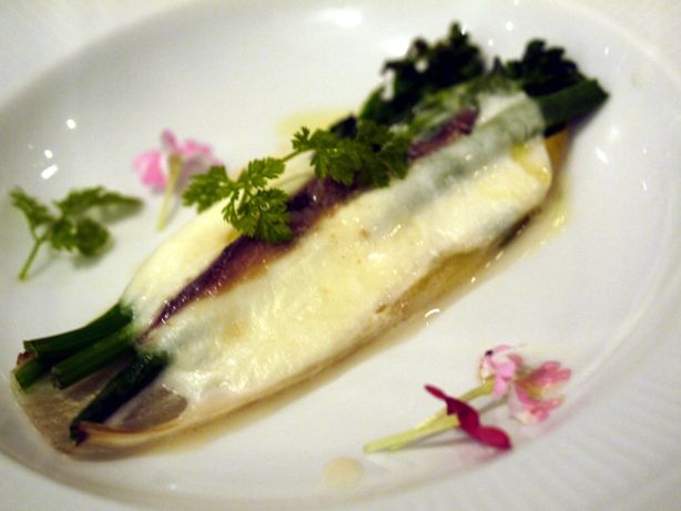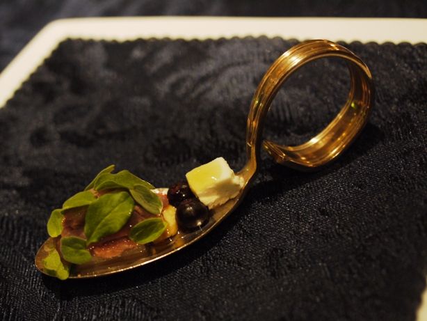 イタリア語で大理石という意味です。鶏肉とチコリーをミルフィーユ状に層に仕立ててあります。ルバーブのソースに、オレガノ、ベネズエラ産トンカ豆と桜の香り。それぞれの組み合わせが面白かった。
