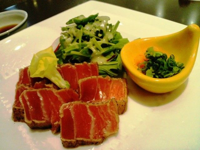 トロ鮪をたたき風に、ポン酢で頂きます。余分な脂が落ちてしっとり。