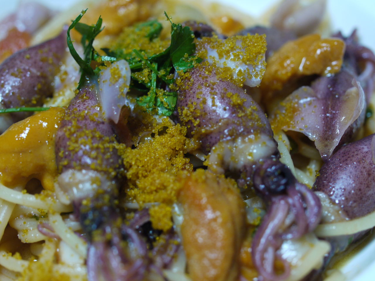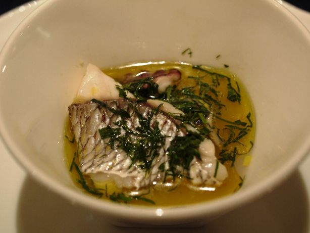 真鯛と蛸と蛤の深い出汁が美味しい。アブッリオ州のオレンジオイルが垂らしてあり、優しい仕上がり。お魚には柑橘系を加えると魚介のくさみがまろやかになります。
