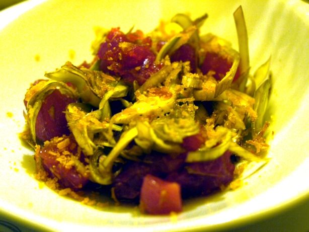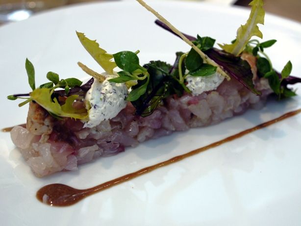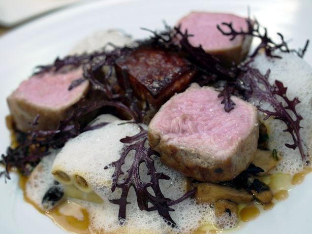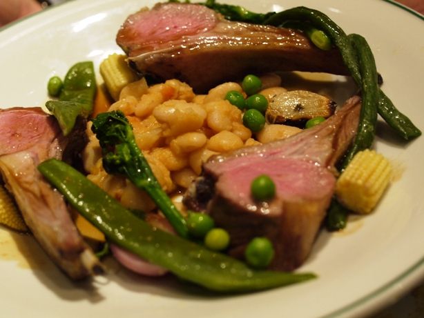 赤身のちょうどいい火入れ加減。ズッキーニと、レモンジャム、クスクス、アーティーチョークのこれまた面白い組み合わせ。