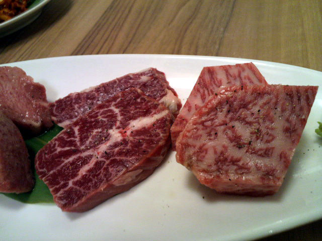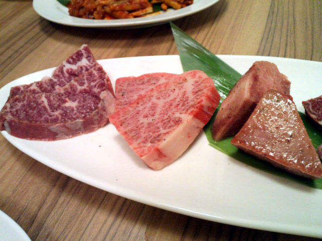 左から、特選ハラミ、フカヒレ、特選牛タン。