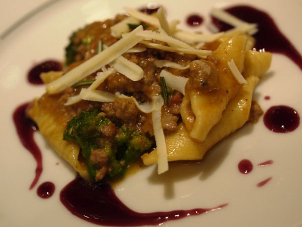 ボローニャ州イモラの郷土料理のパスタ。サルシッチャのラグーとリコッタサラータとローズマリーの香りが効いています。