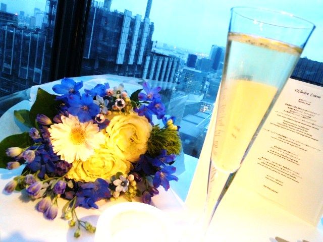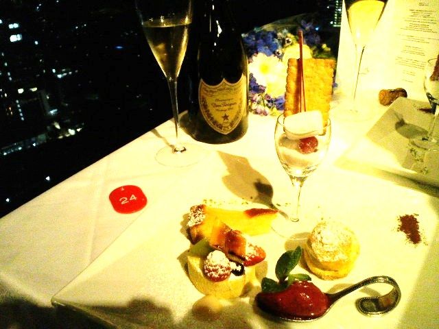 高層夜景に浮かぶテーブルにドンペリ♪