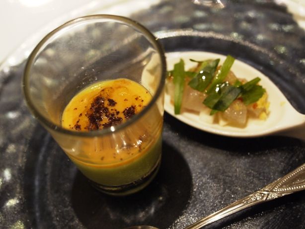 栗の蜂蜜を添えて。ワンスプーンの中に、異なる食感や味わいをもつ食材の未知なる味覚が・・・