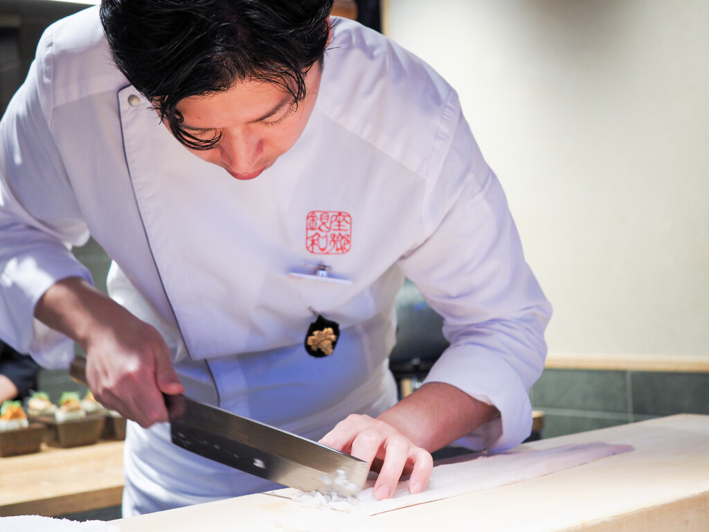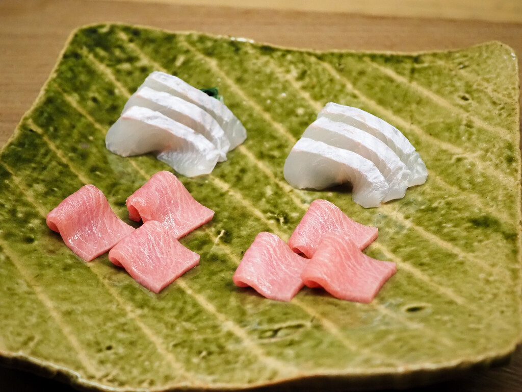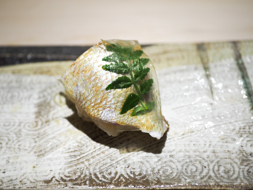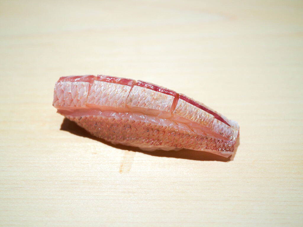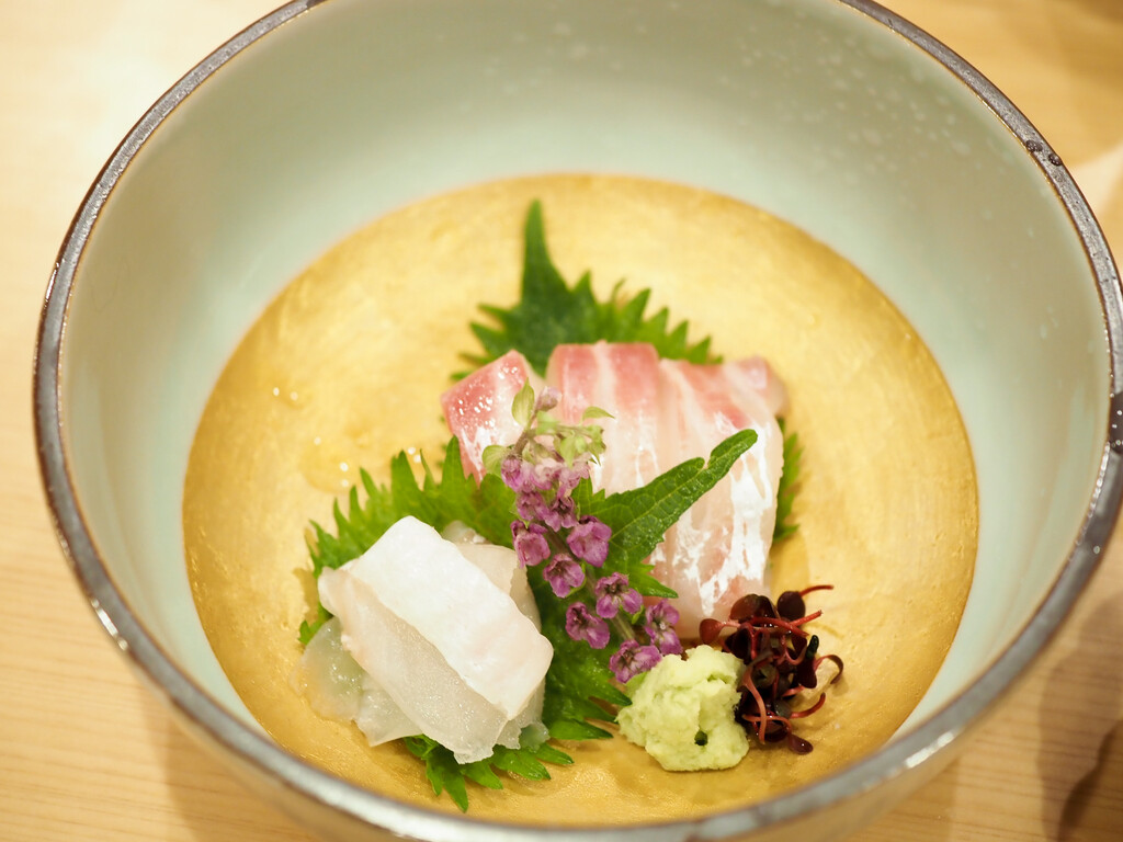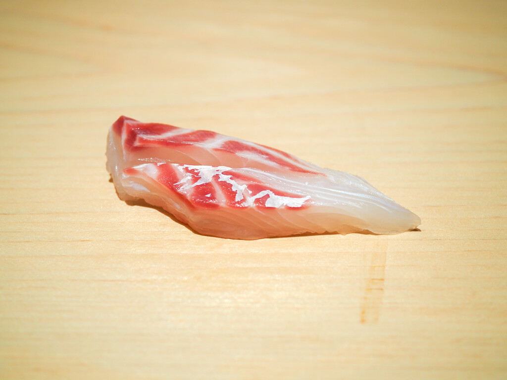 淡路のあこう(あずきはた)は、塩と柑橘がシンプルに旨味を引き立てます。皮も添えて。