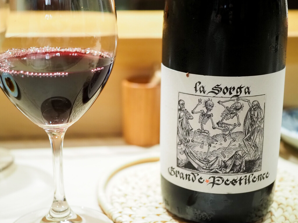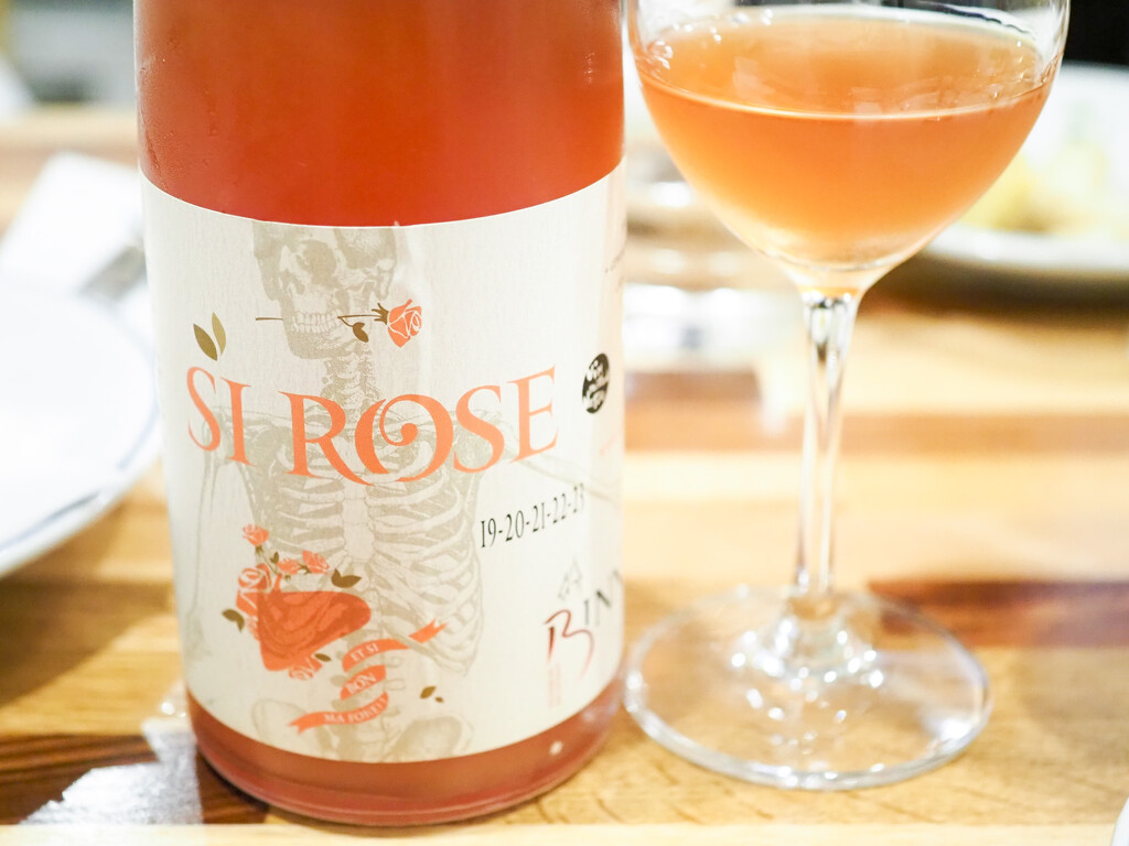 2019年から2022年までのリザーブワインをアッサンブラージュしています。ゲベルツ多めなのに、すっきりとした辛口のロゼに仕上がっています。薔薇を加えたスケルトンに、肝臓がお花畑やリボンに包まれているのが、ウィット。