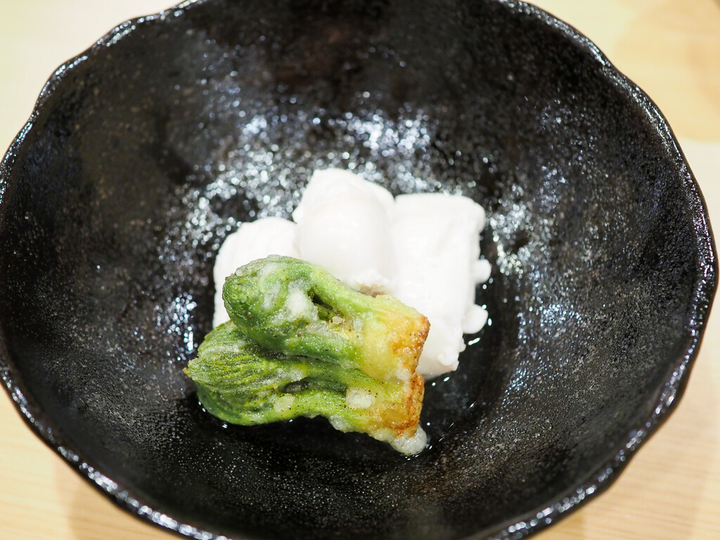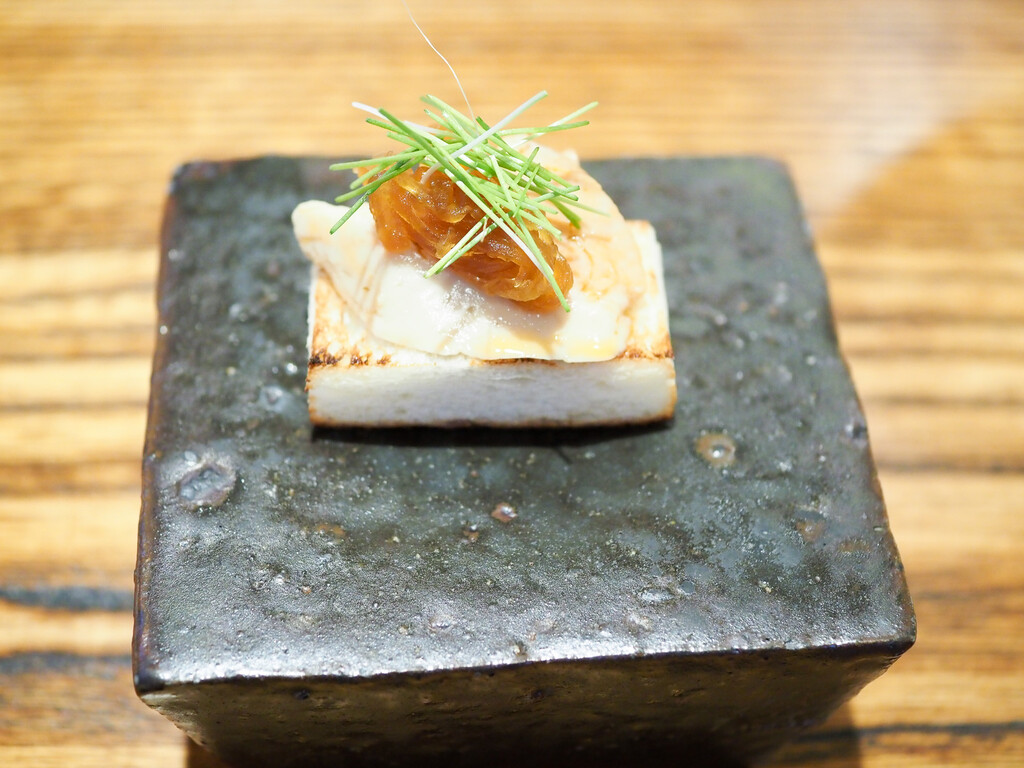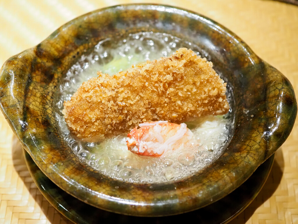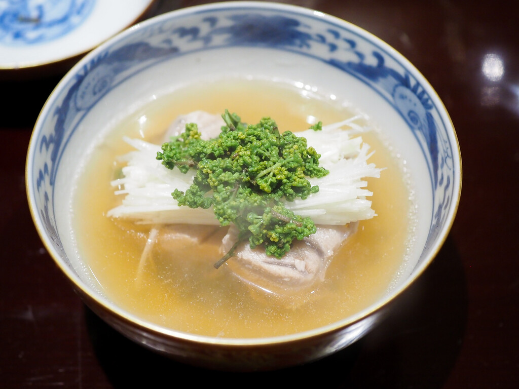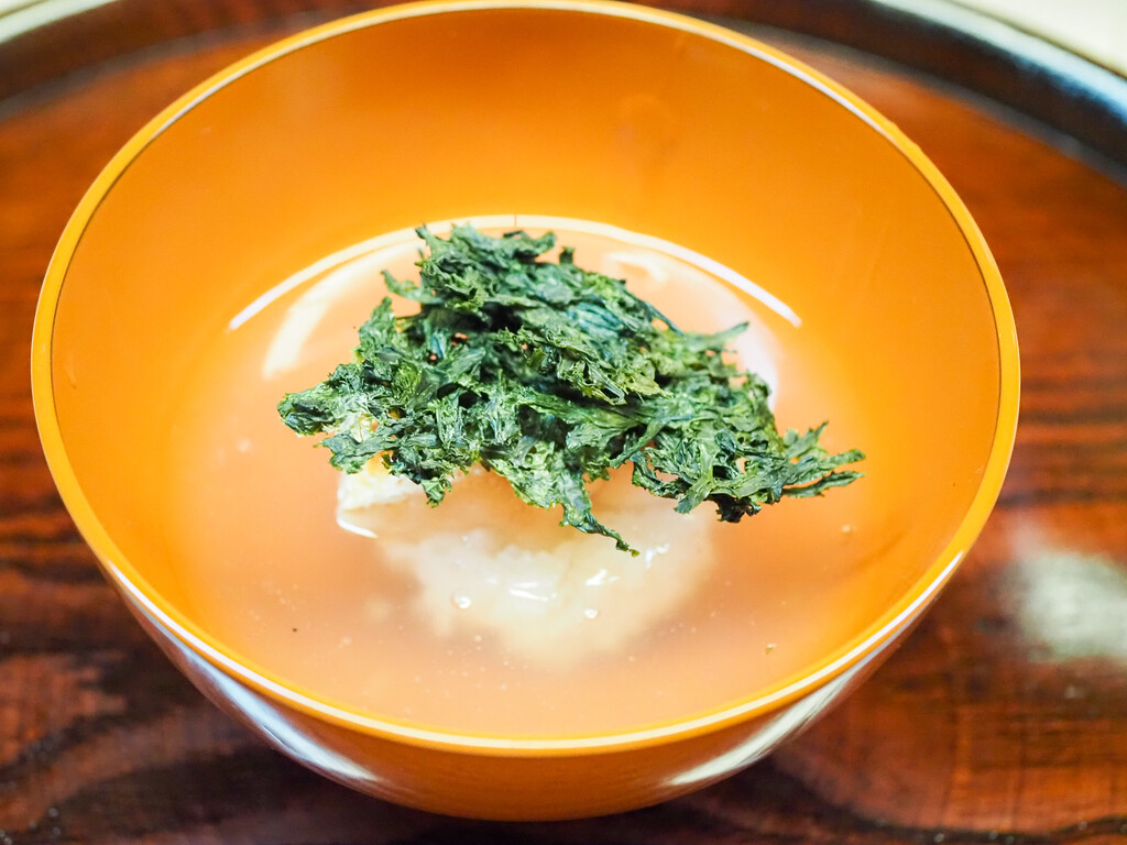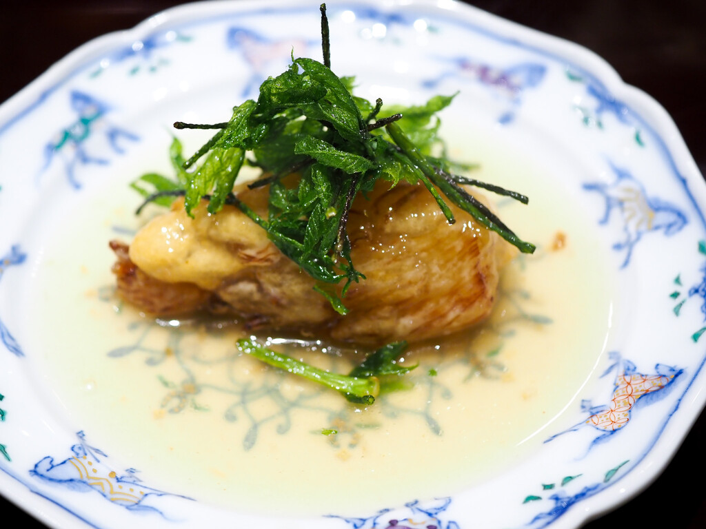 すっぽんのお出汁に飛騨高山のこしあぶらの素揚げをのせて。