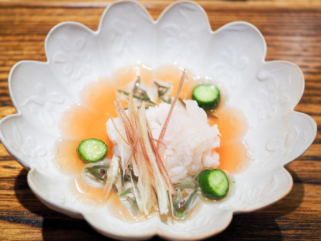 塩酢か、昆布醤油ジュレをつけて。