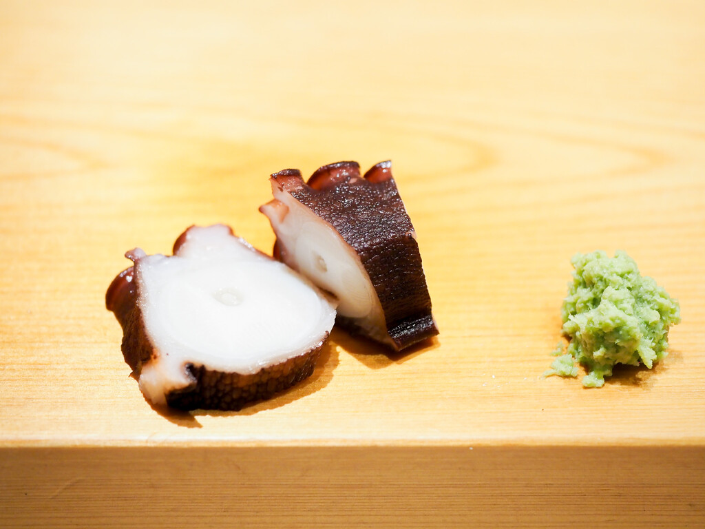 さきほどのたこも、むちっとした食感。味がしっかりあるので、山葵だけでも。
