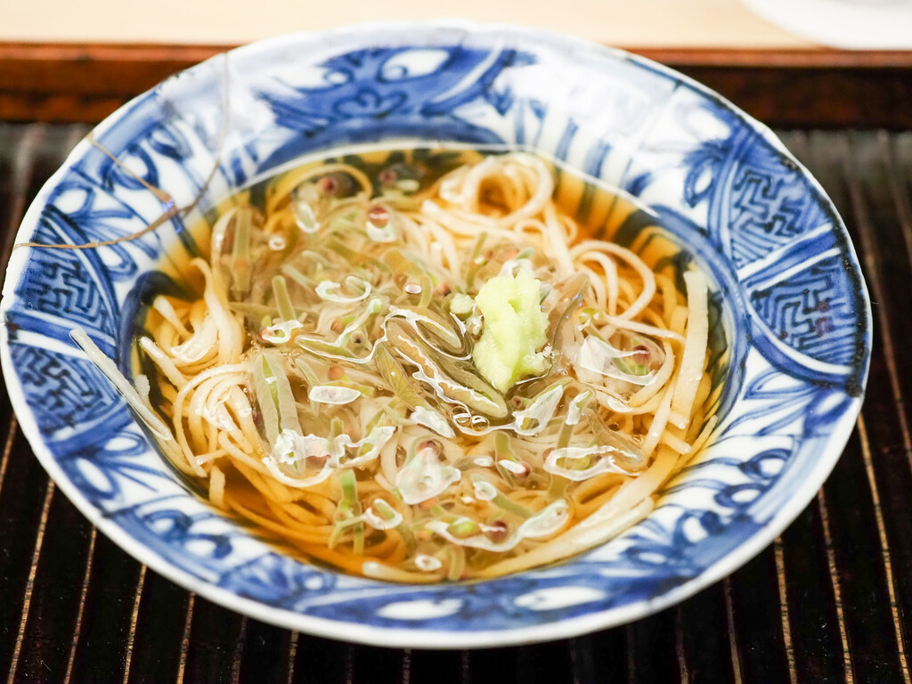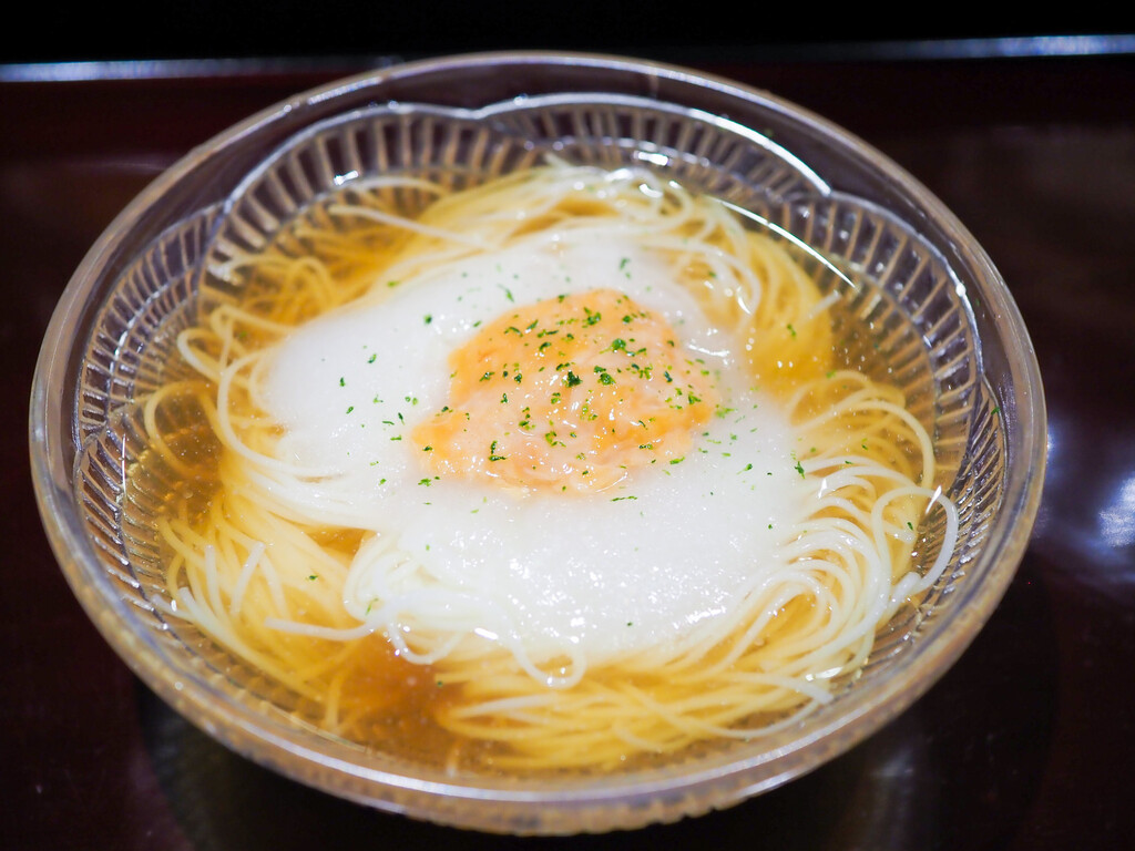 このこの綺麗な旨みと香りに、新玉葱の優しい甘みが溶け込み、素麺をスルスルと。