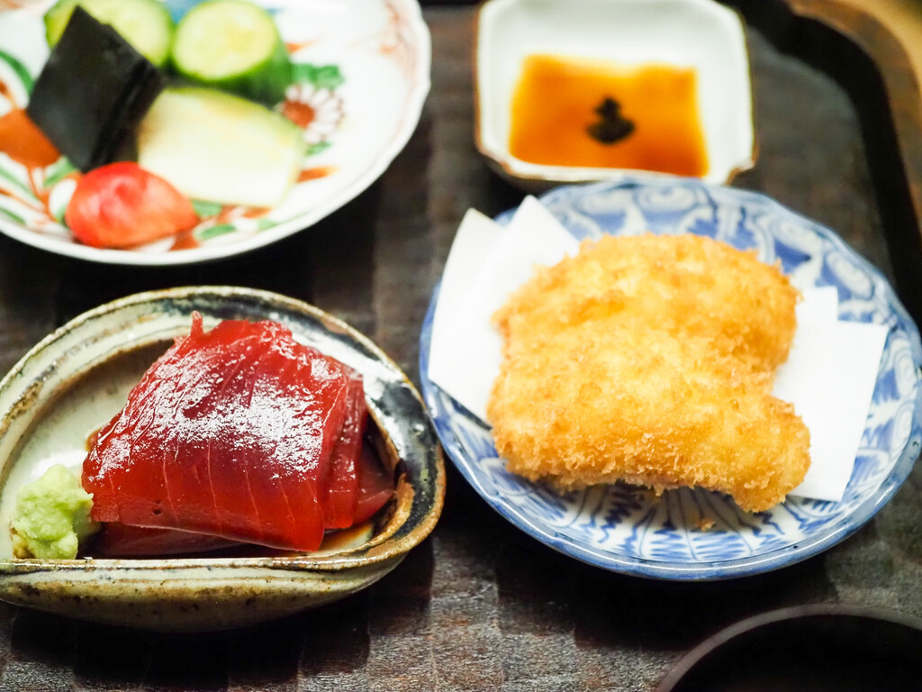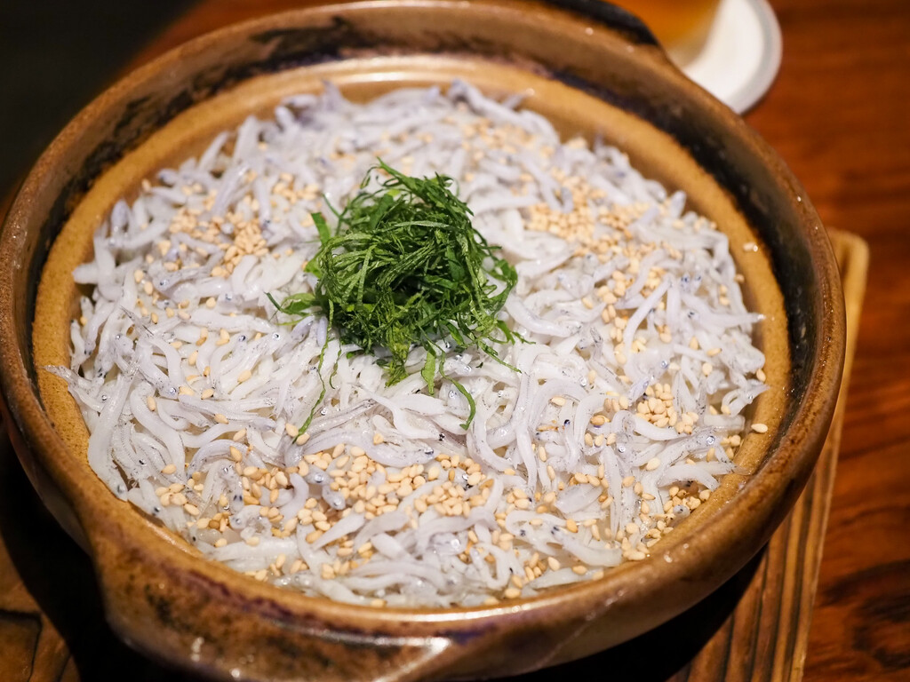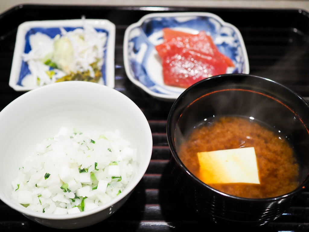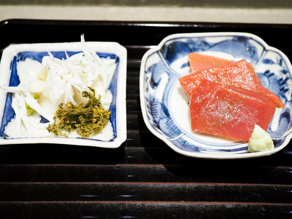 鮪のはがしの漬け。花山椒炊き。釜揚げしらす。