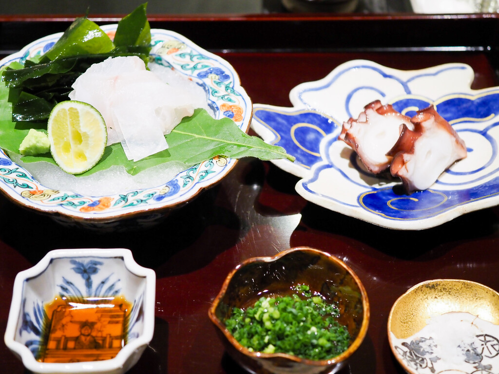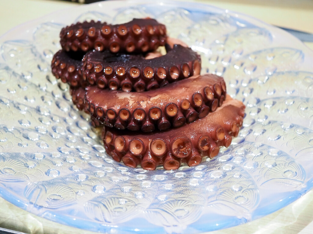 のせたラリックの魚の器が素敵。気泡の水玉模様が蛸の吸盤とリンクしてます^^