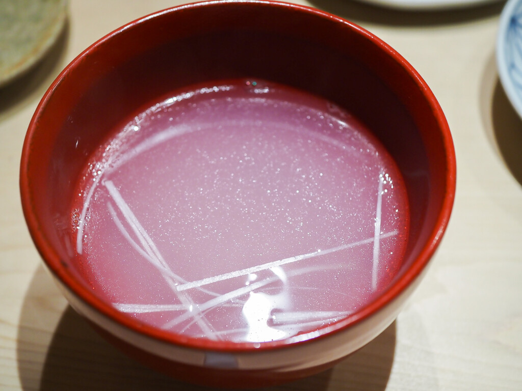 鱧に梅肉をのせて。鱧の旨みが吸い地に溶け込みます。