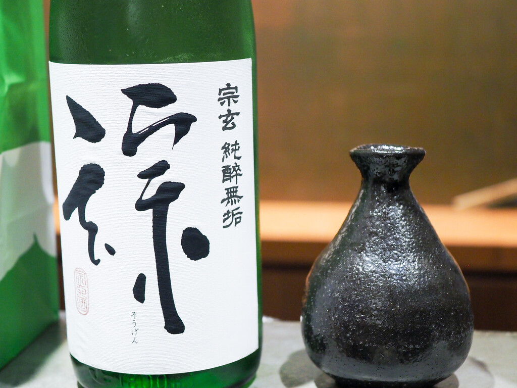 能登のお酒、宗玄を熱燗で。山田錦を精米歩合55%。