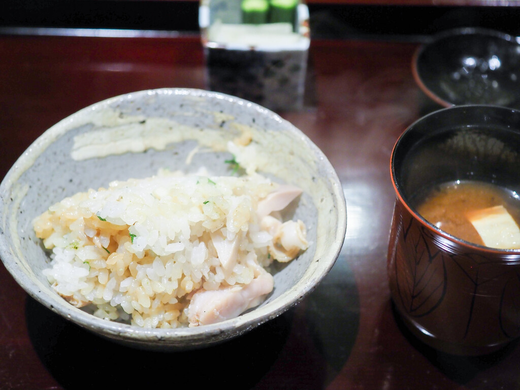 銚子の200圓遼遒瞭誉茵米の付け根の部分)を炊いて、千切り白葱と花山椒をのせたねぎま鍋風に。