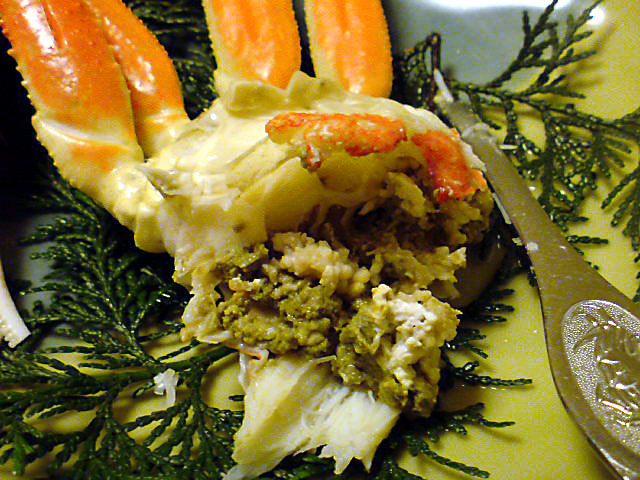 何かが足りない・・・松葉蟹はまだ未熟であと2回くらい脱皮しないと成熟しないそう。足が半透明だったので、地元民に言わせると水蟹なんですって。
