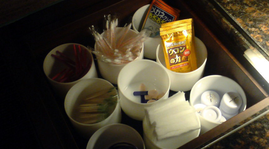 化粧室のアメニティーもいろいろ、フレーバーマウスウォッシュやウコンの力まであったのは驚きました。