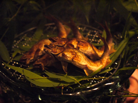 龍吟名物の「泳がし鮎の炭火焼」