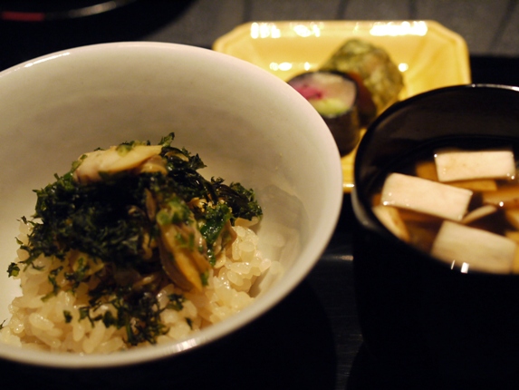 「大浅利の炊き込みご飯と、松茸の味噌汁」