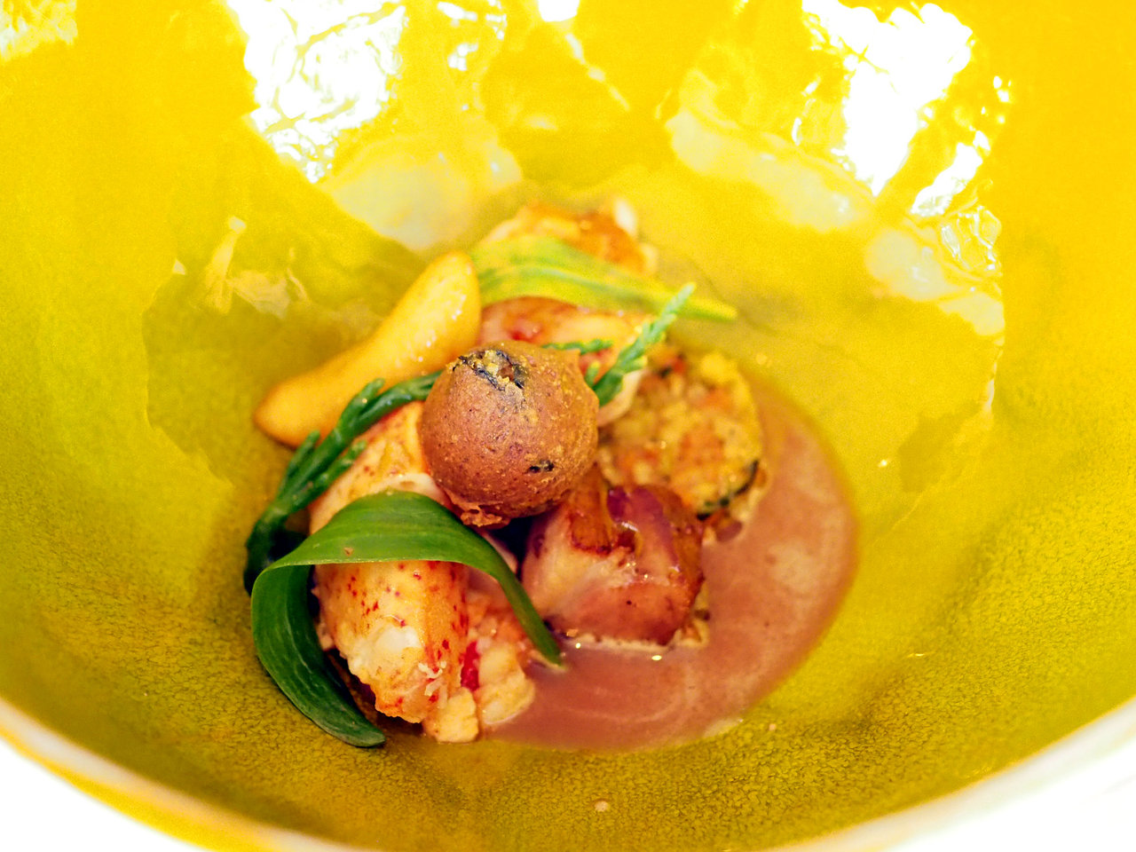 »ÆÍӤΥե£¥ìÆù¤Ë¥Ï¡¼¥Ö¤Î¥Ú¡¼¥¹¥È¤ò¤Î¤»¤Æ¾Æ¤¡¢4¼ï¤Î¥½¡¼¥¹¤È¥Ý¥à¡¦¥¹¥Õ¥ì¤ò½Å¤Í¤Æ¡£